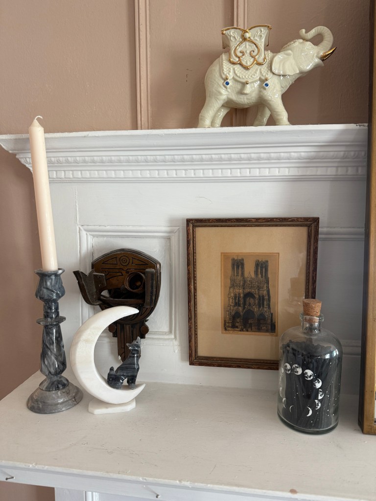 I found this little moon macrame wall hanging at an antique store for $10 and I’m obsessed with her. I acquired the tiny oil painting on the right from the artist’s square in Montmartre when I was in France for $30 from a local artist. I honestly cannot remember where I got the vintage print of Amiens, but it was one of my favorite architectures to learn about in college.